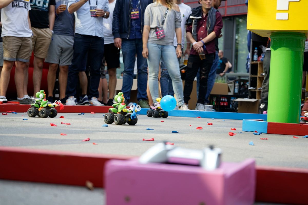 The official ESL One show starts at 14:30 and the first semi-final shortly thereafter, but before then, there are plenty of other activities to check out at the venue. For a start, there is DHL BoxStacker Pro, the cool VR game we already told you about. But if you’re physically fit, you might like to climb up on one of the platforms and engage in hand-to-hand combat. An old acquaintance from Italy is proving particularly popular: Super Mario is driving around in remote-controlled cars with some of his friends.