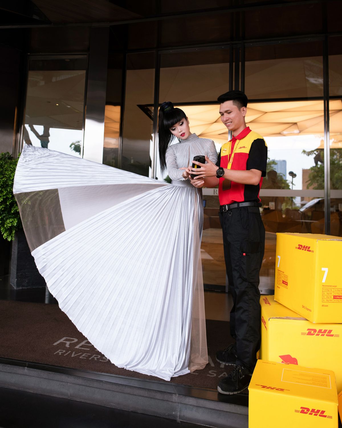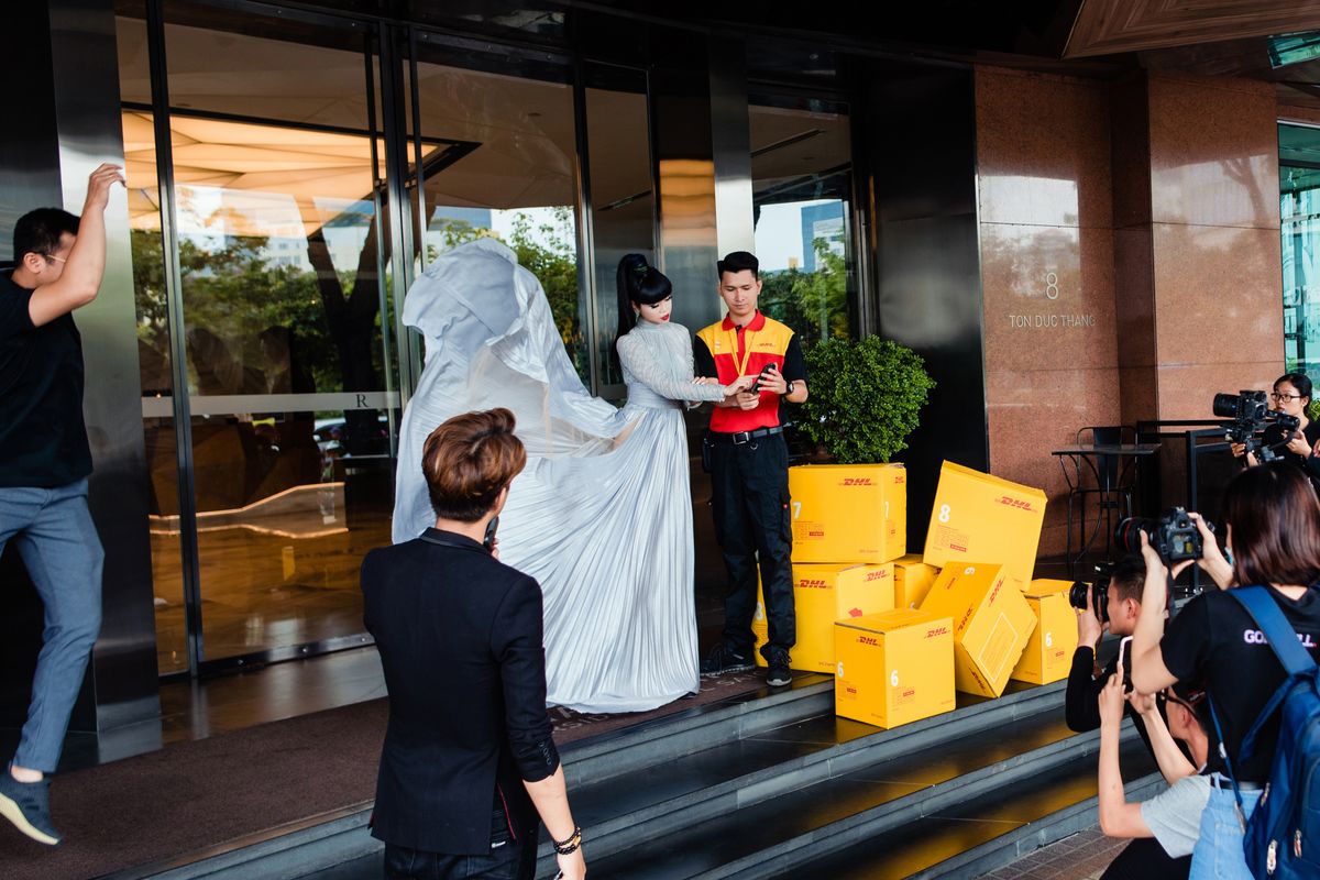 Despite the outbreak of the global virus, COVID-19, we continued to ensure all deliveries arrived safely and on time. Our employees displayed a remarkable degree of dedication under such serious circumstances. Working with Jessica and various designers, we coordinated the swift delivery of sustainable haute couture dresses from Paris, Lebanon, and Jakarta to Vietnam. A tight schedule was upheld to ensure that every gown arrived in Vietnam within two to three days.