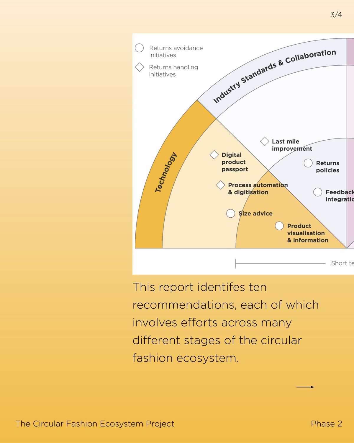 “For our first Circular Fashion Ecosystem Phase 2 Project, we investigated the reasons behind returns and explored features and policies that would reduce their need and associated impact. The research led us to two target outcomes which when combined, create a target state where the fashion industry can be held accountable for our products and enable a more responsible future.”