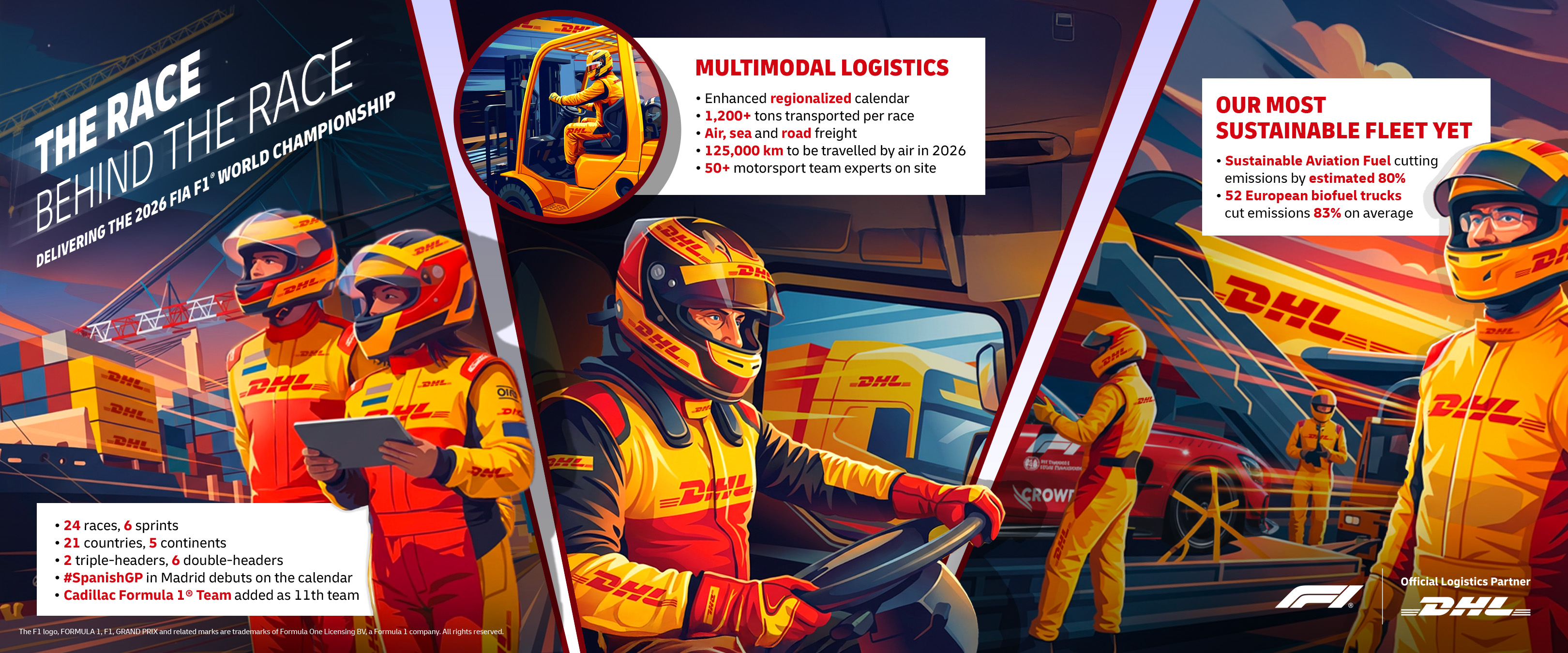 DHL powers the enormous logistical effort of transporting up to 1,200 tons of high-value freight to each race.