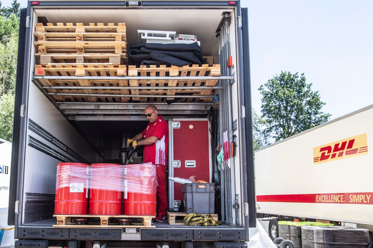 This season, the drivers have a maximum 105 kilos of fuel per Grand Prix. This is delivered to the race venues by DHL. Trackside Manager Martin Pople explains the logistical challenges this poses.