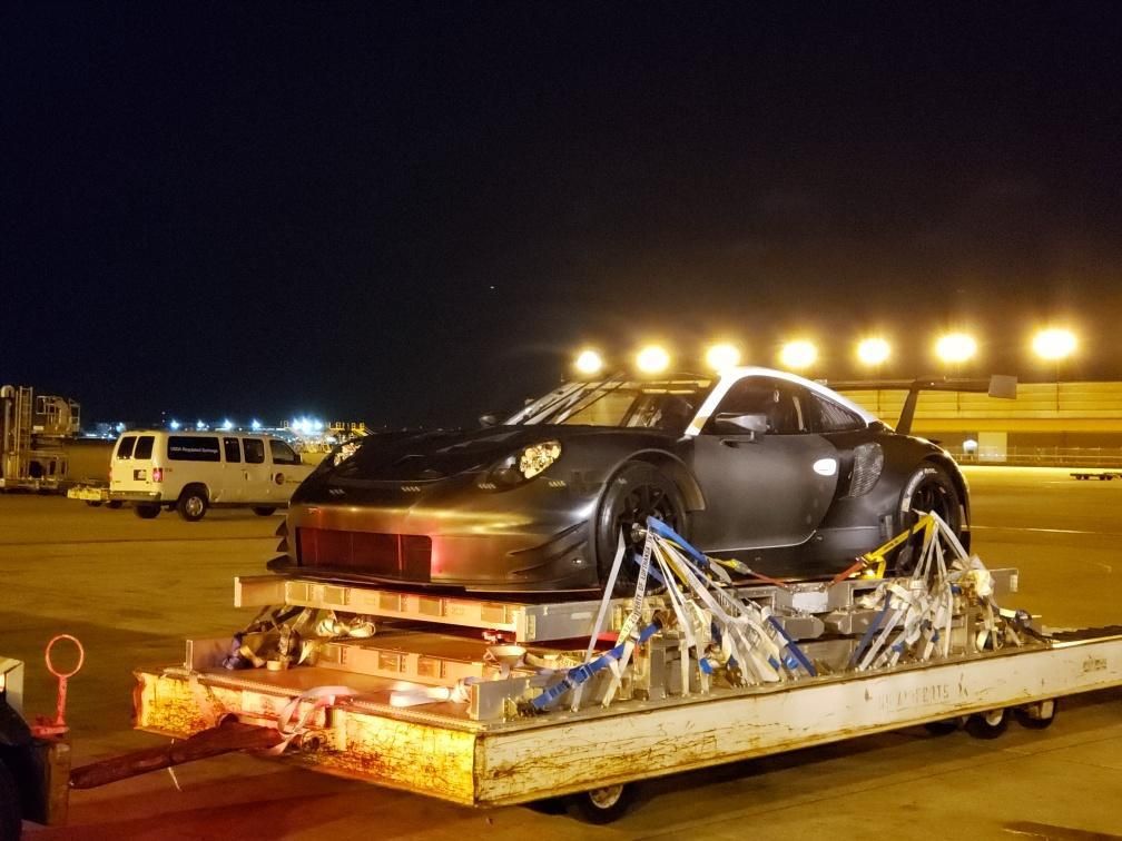 Mission accomplished! Project 1 Porsche makes it to Sebring in time for scrutineering. What an impressive performance by everyone involved in such a short space of time! We’ve got exclusive pictures for you of the 911’s arrival at the airport in Atlanta. So much action even before first practice has got underway – it’s going to be an exciting race weekend here in Sebring!